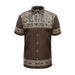 This earthy brown short-sleeve shirt with traditional beige tribal designs will make a statement that is both bold and grounded. This button-up blends traditional island culture with contemporary daily wear thanks to its elaborate detailing on the chest, sleeves, and hem. Perfect for informal Fridays as well as celebratory events.