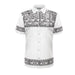 Draw attention with this striking white short-sleeve button-up that has striking black tribal patterns on the hem, sleeves, and chest. This shirt, which combines traditional island motifs with contemporary design, is ideal for informal get-togethers or cultural events. Breathable and lightweight for comfortable wear all day.